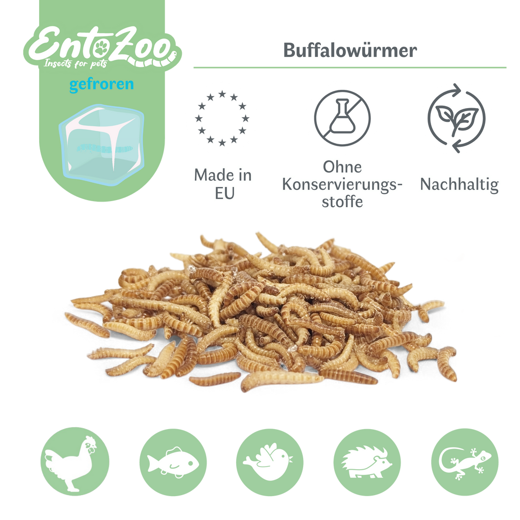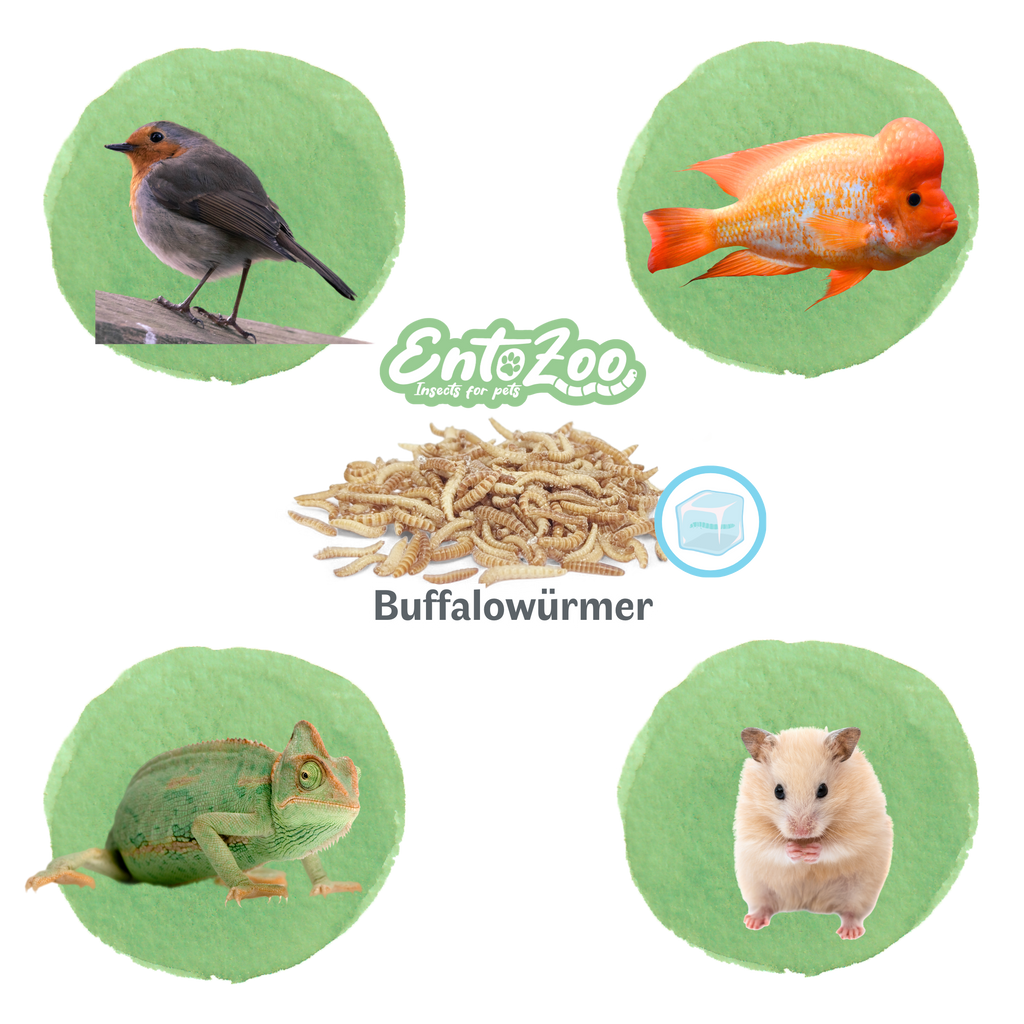 Gefrorene Buffalowürmer Buffalos Futterinsekten einzeln entnehmbar