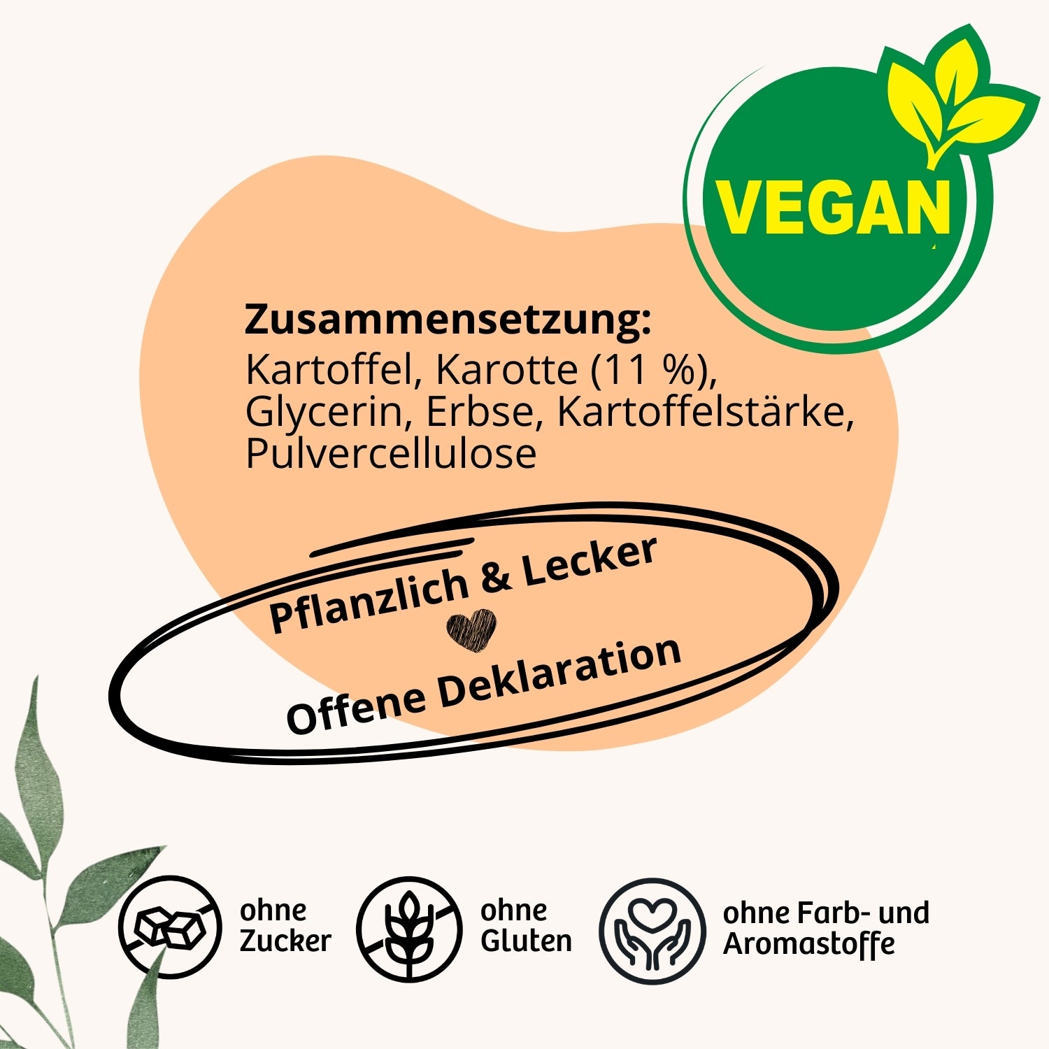 Zusammensetzung: Kartoffel, Karotte (11 %), Glycerin, Erbse, Kartoffelstärke, Pulvercellulose.