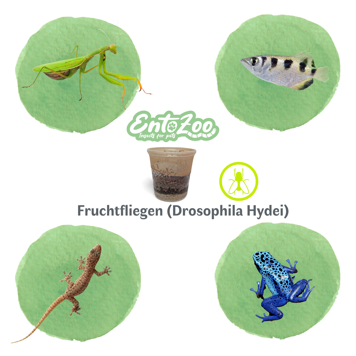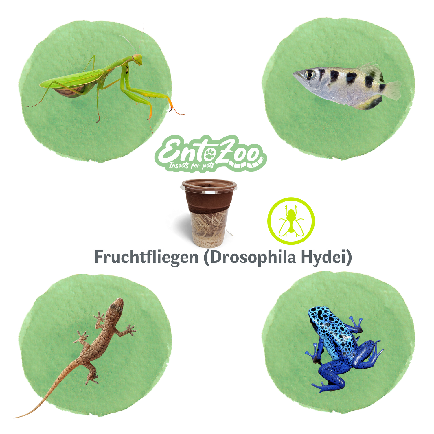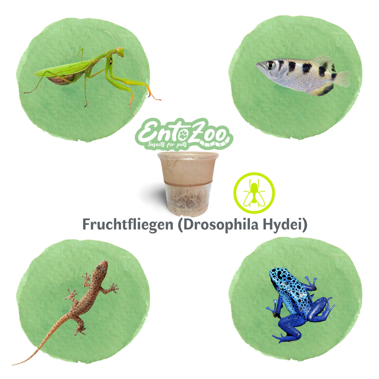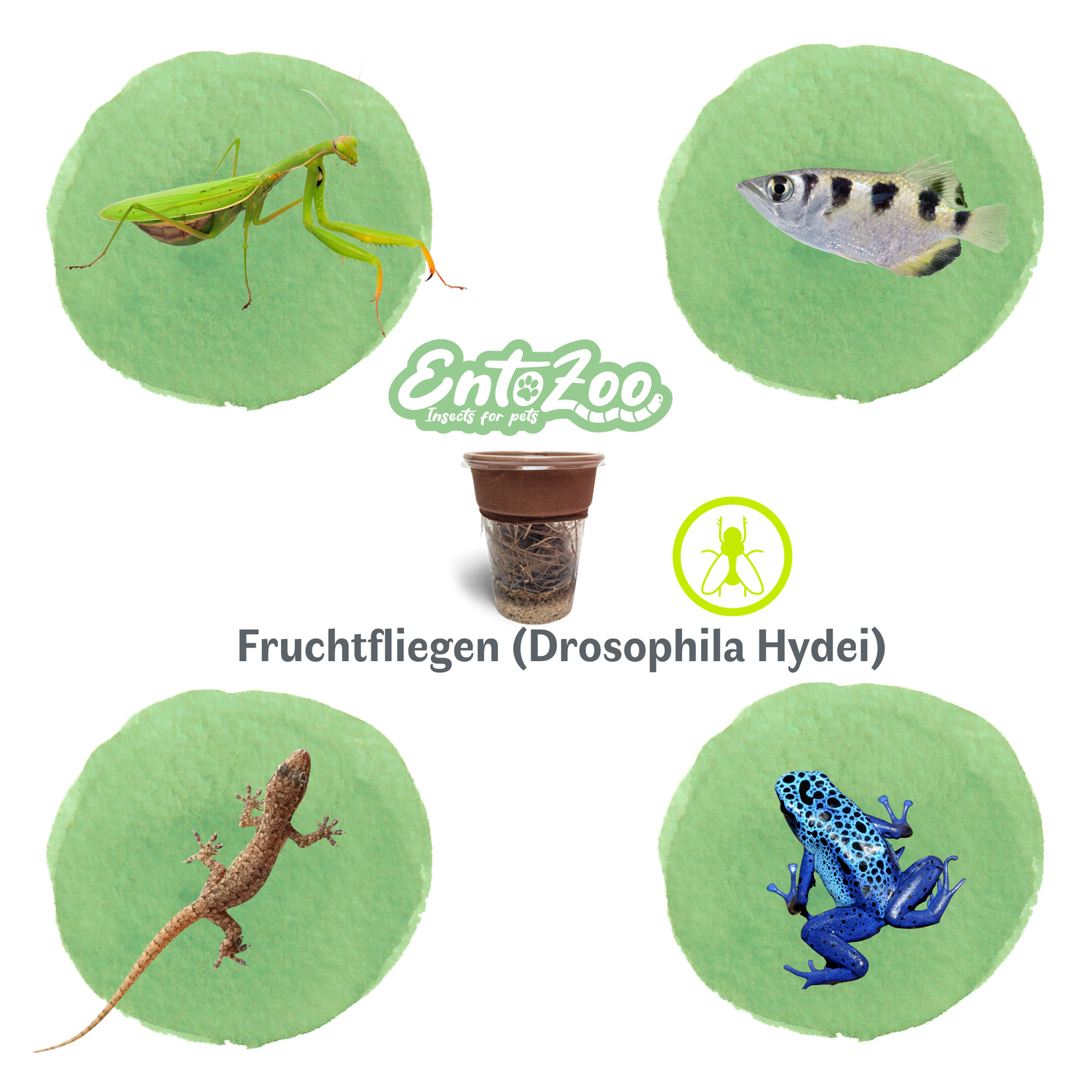 Fruchtfliegen (Drosophila Hydei) Zuchtansatz, Futterinsekten für kleine Tiere - Klein / 0,5 L